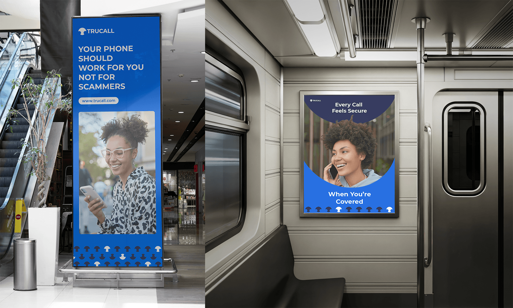 TruCall is a visual identity project for a phone protection brand designed to help users screen calls, block scams, and verify unknown numbers. The final identity balances trust, simplicity, and modern design, creating a brand system that can scale across product UI and marketing.